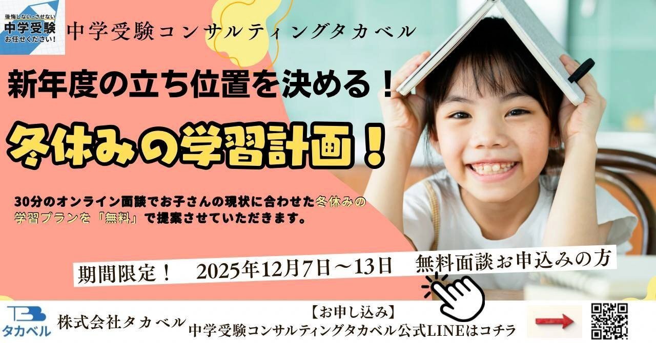 こんにちは。 中学受験コンサルティングタカベルの高畑で...