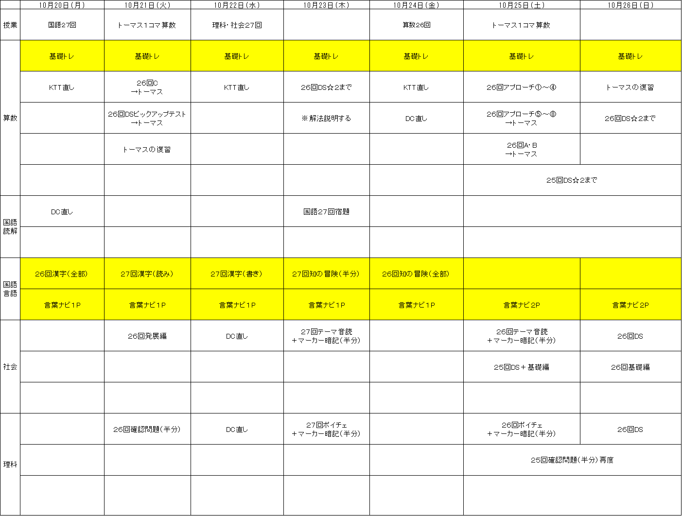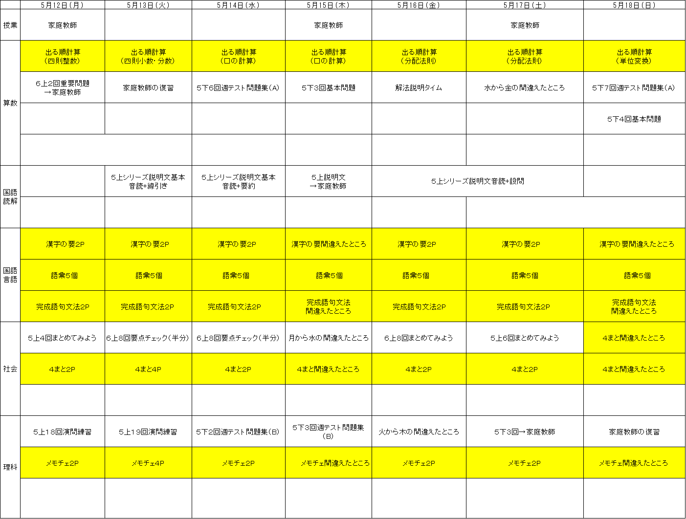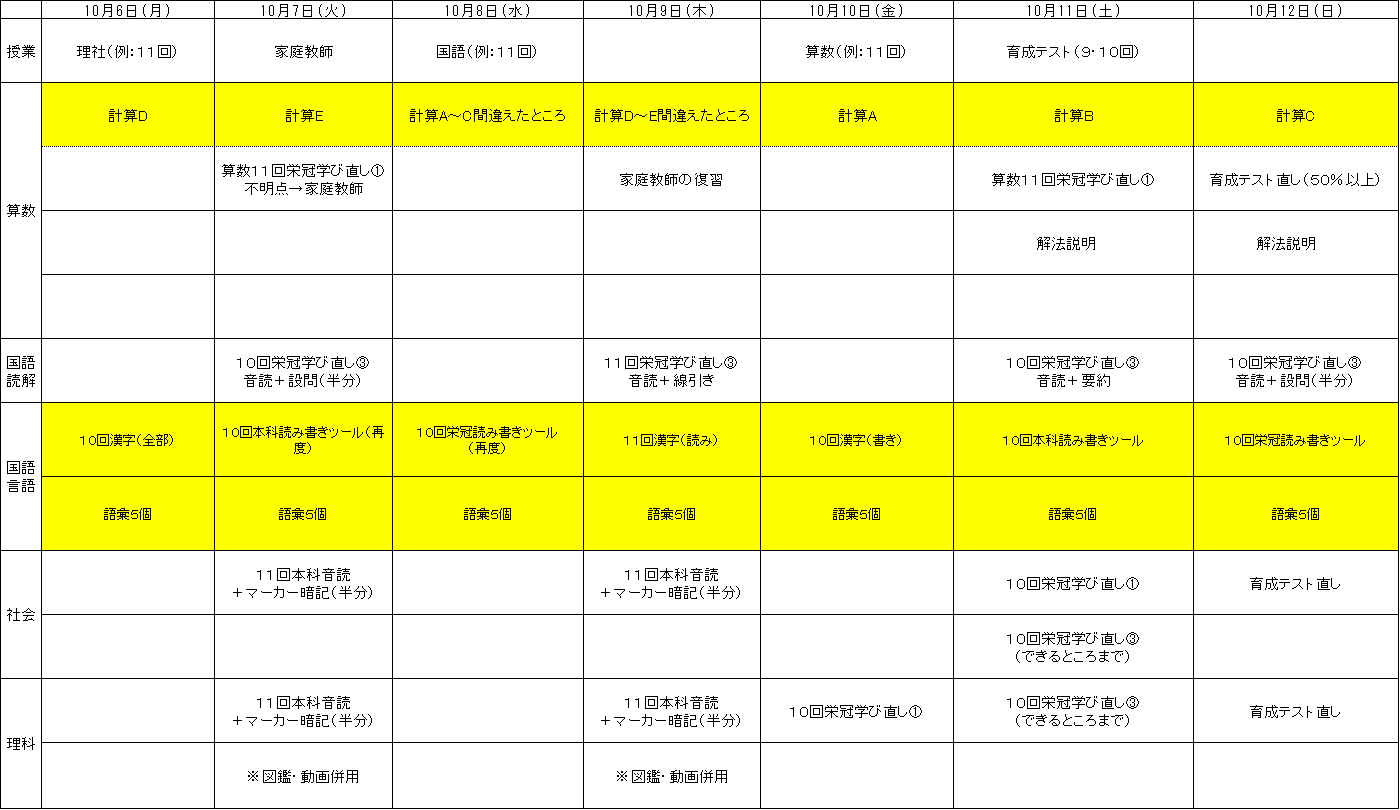 | 社会 | 算数が苦手な場合、社会は軽めに調整しています。 |